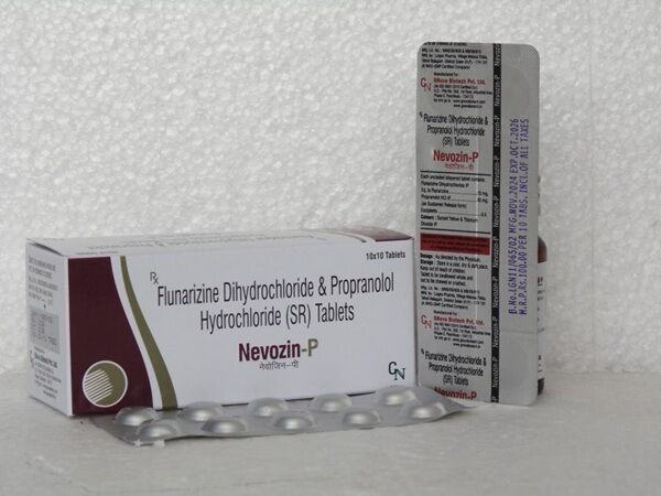 Flunarizine + Propranolol Tablets come under the brand name “NEVOZIN-P” and are used for the treatment of migraine. A migraine is a severe pain or pulsing sensation on one side of the head and there are certain symptoms such as vomiting, nausea, difficulty in speaking, tingling, and sensitivity to light as well as sound. Take Flunarizine + Propranolol Tablets as prescribed by a medical professional and avoid taking more than the recommended dosage as more can affect the health adversely. There are certain side effects of consuming these tablets which last only for fewer days.
