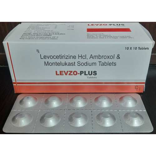Levzo Plus has a composition of Levocetirizine, Montelukast Sodium & Ambroxol Tablets that is a collection of three medicine: Ambroxol, Montelukast, and Levocetirizine. It is used to relieve Asthma diseases. Asthma creates breathing problems that cause narrow airways and extra mucus. Ambroxol is a mucolytic that is used in the relief of symptoms of respiratory diseases and thins or excessive mucus and helps patients freely and deeply breathe. It is a component of Mucoangin, Lasolvan and Mucosolvan. Montelukast is used in the treatment of seasonal allergies. It controls the action of leukotriene D4 in our lungs.